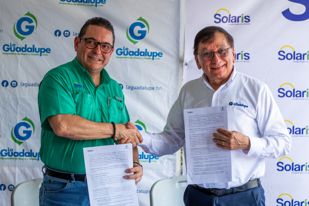 En hora buena Cooperativa La Guadalupe y Solaris Honduras firman una importante alianza estratégica empresa dedicada a distribución y instalación de energía solar, es por ellos que Cooperativa La Guadalupe pone a disposición el El Credi Verde, es un producto financiero que ofrece a los afiliados una alternativa para la instalación de Energía solar Fotovoltaica, viable, de alto rendimiento, confortable y económica que permite cubrir la necesidad de electrificación en el hogar. Lo cual, además de mitigar las afectaciones del medio ambiente y promover el desarrollo social, contribuye a abaratar costos en este servicio que es de vital importancia y una necesidad principal.